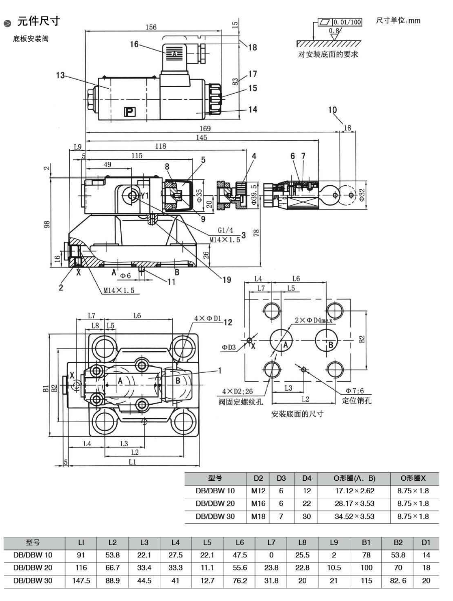 用于底板安裝,安裝面按DIN24340 E型,ISO 6264和CETOP-RP 121 H,用于螺紋連接,用于油路塊安裝。4種調(diào)整元件:①旋鈕②帶護(hù)罩的調(diào)節(jié)螺栓③帶刻度的有鎖旋鈕④帶刻度旋鈕。5種設(shè)定壓力,借助于安裝在其上的電磁方向閥操作卸荷。可選的切換時(shí)間延遲(僅DBW型)。