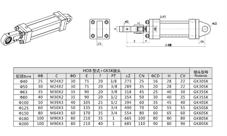 標(biāo)準(zhǔn)HOB+CA型 單耳型+GKSK關(guān)節(jié)耳環(huán)接頭外形安裝尺寸圖