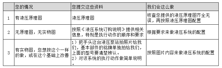 做一臺液壓系統(tǒng)需要客戶提供液壓要達到什么樣的功能要求。液壓系統(tǒng)的整個工作過程。比如一共有幾個油缸或馬達,每個油缸需要達到多少推力,每個油缸的速度是多少是否有變化,以及每個油缸的負載情況。多個油缸時,是否有同時工作或同步要求。(是否變化、還需要提供工作時間、工作環(huán)境)