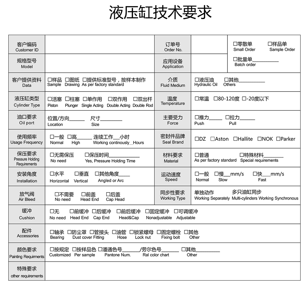 3、您填寫《液壓缸技術(shù)要求》做最終報價確認。