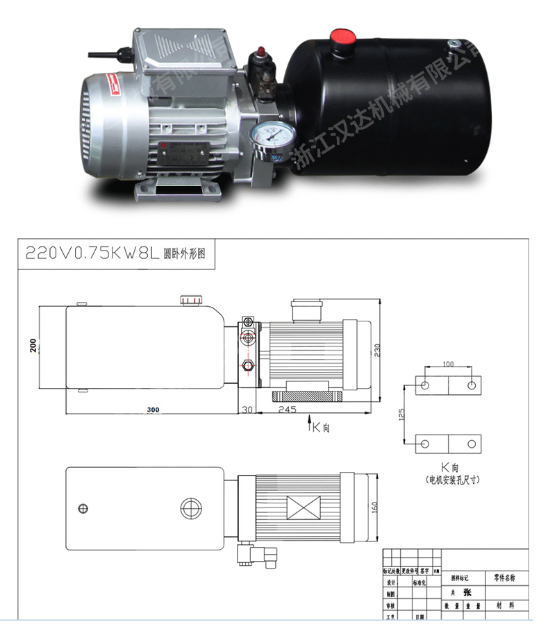 | 油泵 | 2.5ml/r | 電機 | 0.75KW |