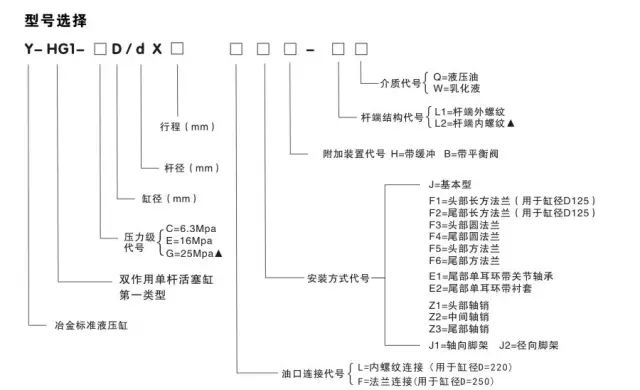 4)按照以上三條,可按照以下YHG1油缸型號(hào)說(shuō)明,明確您需要的型號(hào);